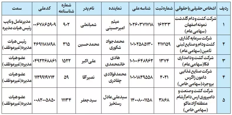 هیات مدیره شرکت کشاورزی و دامپروری ملارد شیر (سهامی عام)